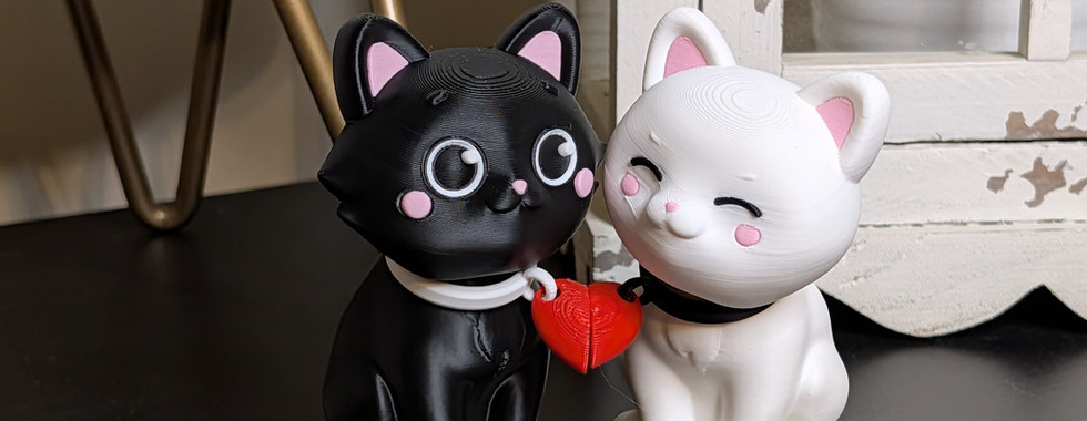 Each figurine is carefully 3D printed using high‑quality PLA for a smooth, durable finish. The magnetic heart collars gently click together, making this set interactive and extra delightful for cat lovers of all ages.
