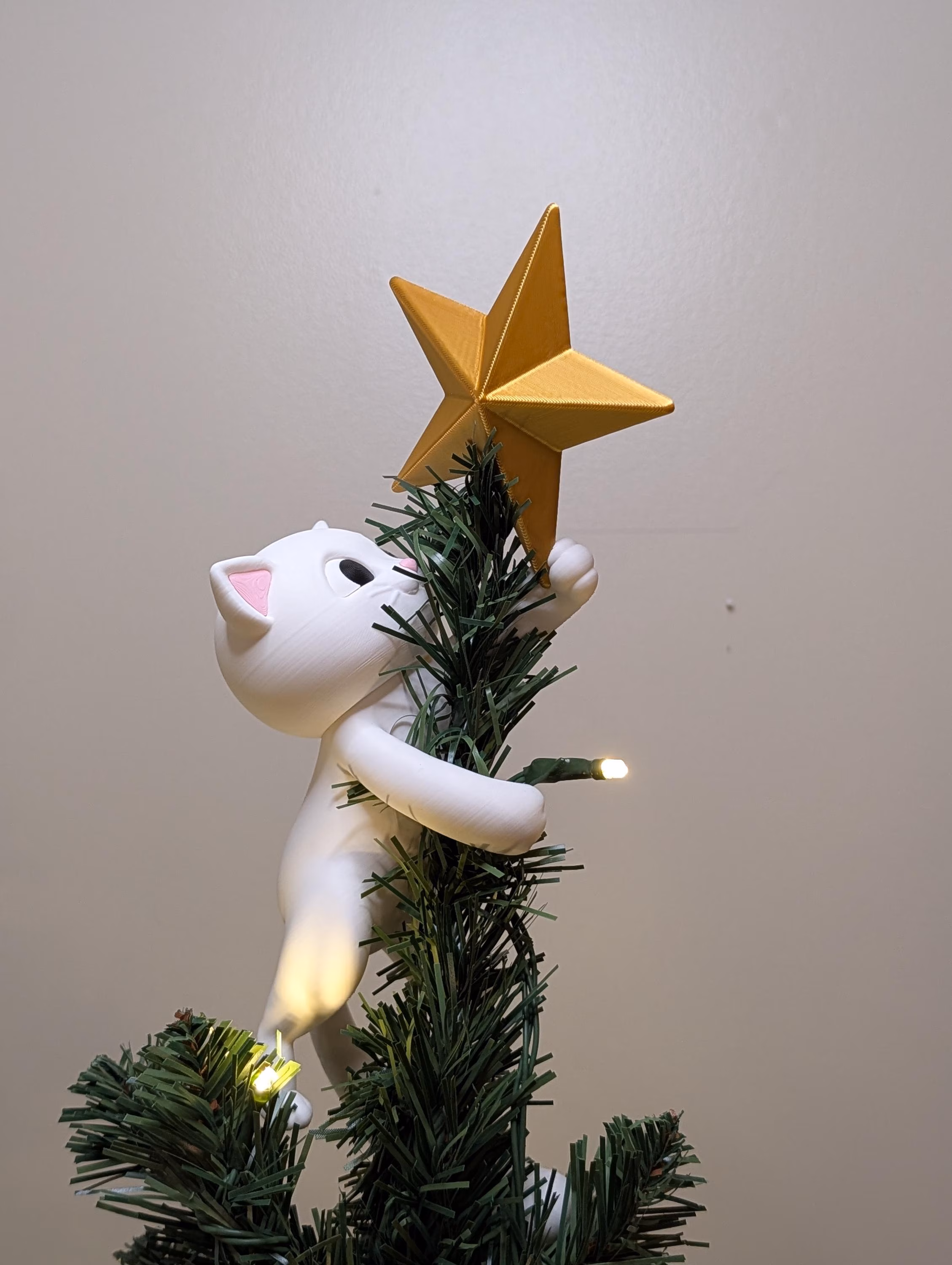 Bring a touch of whimsy and feline charm to your holiday décor with this enchanting 3D printed tree topper. Featuring a graceful cat stretching upward to catch a shining star, this piece is the perfect blend of cozy, magical, and modern design. Whether you’re a cat lover or simply want a unique twist on traditional tree toppers, this topper will make your tree truly unforgettable.