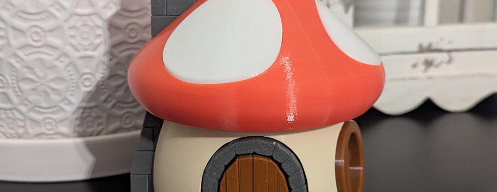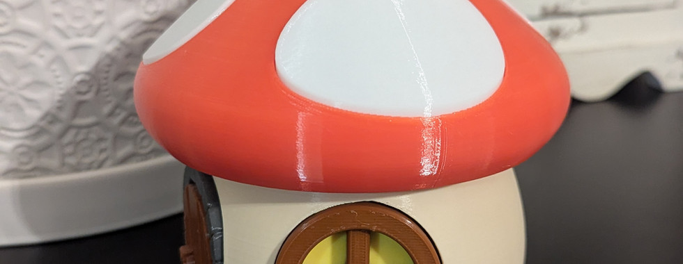 Our 3D printed homes are printed in PETG for use in outside gardens as it is water resistant and offer UV stability. The mushroom house roughly measures 5” x 5” x 6”.